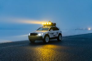 FAT インターナショナルとの協業により開発された専用リバリーをまとった「ベンテイガ X コンセプト」は、車高を岩場でもボディを傷つけないよう55mm引き上げ、トレッド幅を120mm拡大。オフロード専用タイヤとホイールアーチエクステンションを装着することで、より高い走破性と力強いスタンスを実現しています。